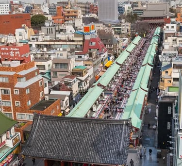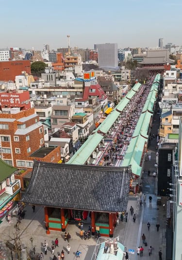 Prime Shin-Nakamise arcade frontage, rare commercial freehold in Tokyo's #1 tourist district.